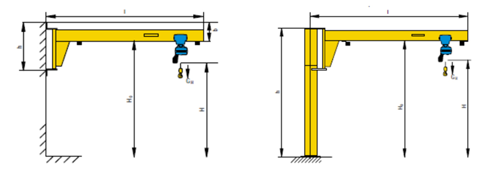| 起重量 | 前伸距 | 升降速度 | 基本尺寸-立柱式懸臂吊 基本尺寸-墻式懸臂吊 |