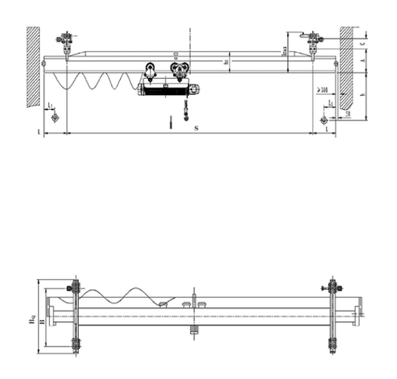 (1)通過使用外伸總臂,可使小車的行駛范圍超出起重機(jī)跨路(2)在需要的情況下,可用于車間的特定區(qū)域(3)如果加選連鎖裝蓋,則小車可往返F起重機(jī)主梁和單軌吊之間。