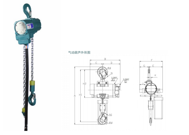 滬工工業(yè)用掛鉤式氣動(dòng)葫蘆參數(shù):